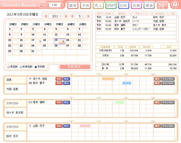 美容室・エステ予約販売管理ソフト「Beauty System」画面紹介