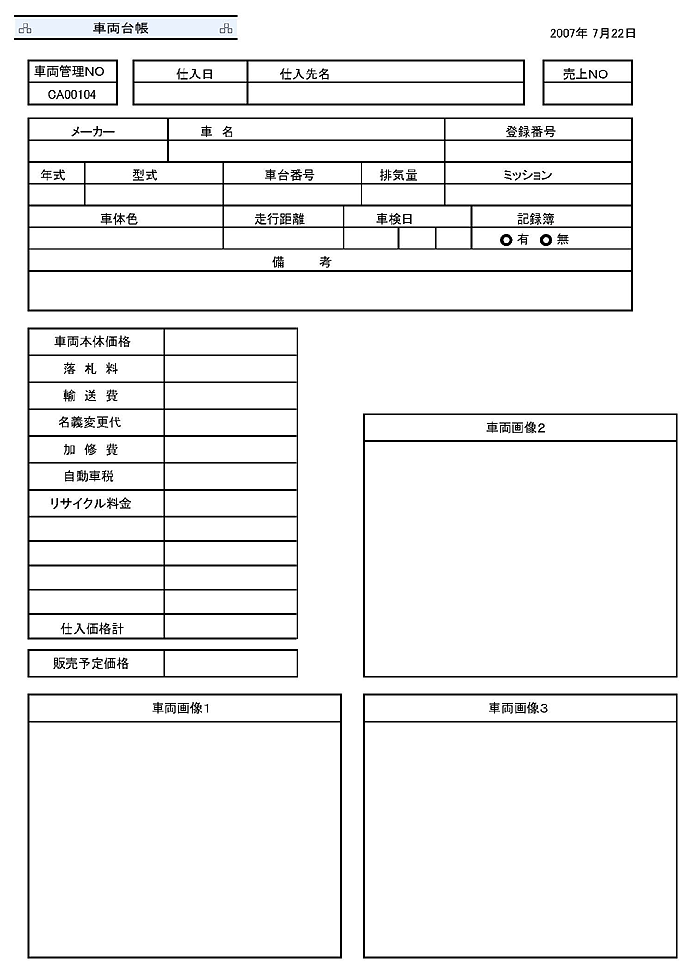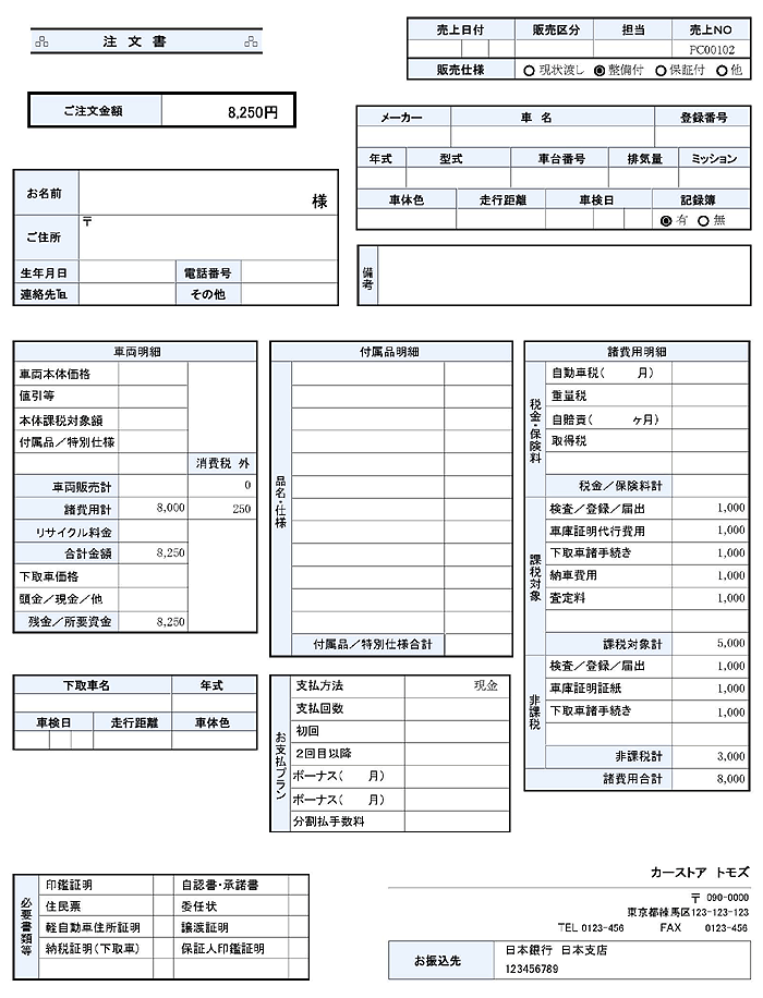 自動車販売管理ソフト「Car Stor System / カー ストア システム」によって出力される印刷レイアウトのサンプル画像をご紹介しています。小さな画像をクリックすると、大きな画像で表示されます。