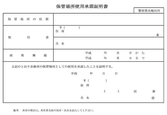 保管場所使用 承諾証明書