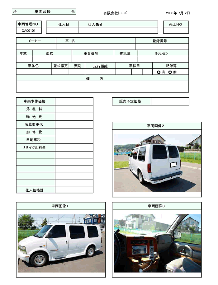「車両管理/売買契約書」作成画面