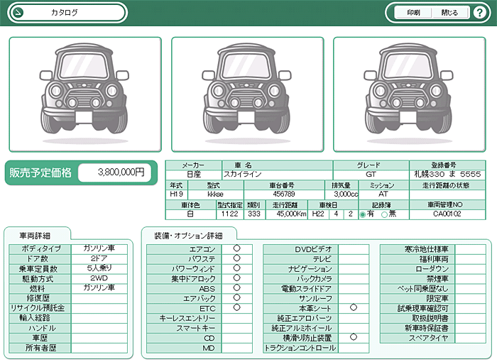 車両管理には、仕入れに関する金額なども表示されます。お客様の閲覧にはカタログを利用してください。