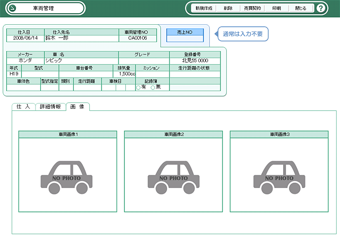 - 1つの車両データに付き車両画像を3枚登録することができます。